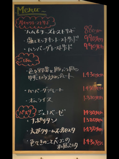 入口のドアの前には階段、店内も広くはなく、ベビーカーで入るには少し厳しいかな、と思います。4人がけのテーブル席が1つあるので、椅子を避けてもらえれば、ベビーカーを横付けできるかな… 子ども用のメニューはありません。
