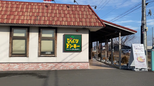Read moreびっくりドンキーはどこも同じだろうと思う。 比較するならスタッフの接客レベルかな。 可もなく不可もなく。 とりあえずどのびっくりドンキーも美味いんです(笑) 水が遅くても料理ができるのが遅くても結局は旨いの一言に辿り着きます! 最近だと絆シリーズのがっつり派のものが出来て、大食いさんにはたまらないです。 個人的にはフォンデュ風チーズバーグディッシュがお気に入りなんですが、そのフォンデュ風チーズバーグディッシュの絆バージョンが出来ないか首を長くして待っております。あとは一人でも食べにきやすいようにカウンター席など出来ればと思ったりします。誰かと一緒に仲良くダベリながらゆっくりって言うのがメインかもしれませんが、こちらですとダイナムさんでパチンコして休憩中にハンバーグを気軽に食べれたりしますし、そのうち改築...