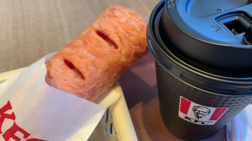 Read moreいちごチョコパイ発売記念クーポン 150円! いちごチョコパイと挽きたてリッチコーヒー合計330円のところクーポン使用で150円。なんとお得なことでしょう!行くしかないでしょ! サクサクいちごチョコパイ、美味しい! 2階のイートインスペースでケンタランチセットと一緒にいただきました。 チキンも家に持ち帰って食べるより、店で買ってすぐ食べるとやっぱり美味しいですね。 いつもは店のレジカウンター前しか歩かないから気付かなかったけど、2階に上がって気付きました。 床がヌルヌルしていますね。ラーメン屋より床がヌルヌルしています。階段もヌルっとし...