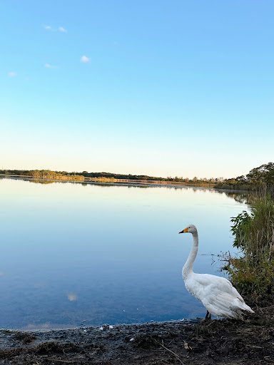 Lakeside rest stop with shops, a noodle bar & an observation deck for viewing migratory birds.