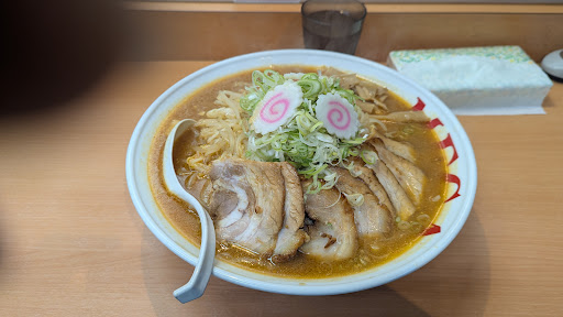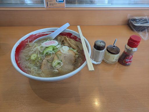 ヤバい店でした。 食券制です。店に入ると厨房の奥から男の声で元気の良い「いらっしいませ」が聞こえます。 塩ラーメン大盛りをチョイス。食券どうするのか周りを見渡すと、大きな女の従業員が無言で近づいてきて、黙って半券を千切って持っていきました。 その後にどうして良いか分からず、取り敢えず空いている席に座ります。 この店は配膳ロボットが導入されており、かなりハイテクでした。小上がりの家族連れも、子供達が配膳ロボットに喜んでいます。 ほっこりしながらラーメンを待っていると、横に人の気配が! さっきの女の従業員です。何も言わずにラーメンを置くと、そのままプイッと居なくなりました。 何故配膳ロボットじゃないのか? 何故何も喋らずにいるのか? あまりにも怖いので、急いでラーメンを食べて店を出ました。ラーメンは美味しかったです! 出る時に、また奥にいる男の従業員から「ありがとうございました!」と元気な声が聞こえましたが、一言も喋らない従業員が対応するのは客からすると恐怖です。次回は配膳ロボットでお願い致しま...