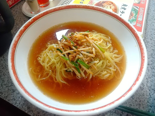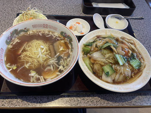 なんとも言えない庶民的な対応が絶妙で、それだけで味わい深い。 マニュアルに無い人間力対応が楽しめるお店ですね。 お客様もガテン系から親子連れ、団体の歓声とまさに中国っぽい熱量を感じます。(ついでにスタッフさんも) 店内がうるさいくらいが良いと思ってくれる方が、がっつり美味い中華を楽しめるお店です。 食事に関しては男二人でも、チャーハン普通盛りを各自頼んだらお持ち帰りになりますので要注意@@ セットメニューの半チャーハンでも通常より多い?と思う量です。 一押しはジャンボエビのエビチリですね。 夜9時頃に行くと食事中なのに床拭きショーも見られますし、紹興酒の熱燗は日本酒のとっくりで出てくるなど、奇抜さが面白好きにはたまりま...