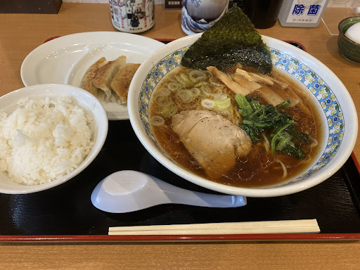 私が知る限りですがラーメン屋さんのスープと言うのはインスタントラーメンのように醤油や味噌のタレをただのお湯で溶かして作ってる訳ではなく、スープ(お店によって違いますが鶏ガラ、とんこつ、魚介、各野菜などなどを煮込んだもの)が作られ、それを醤油や味噌など注文に合わせたラーメンの味に仕立てるので、ただの中華そばでもお店によってめちゃくちゃ美味しい風味のスープに入ったラーメンになる、と認識してるのですが、その風味があまりにも乏しい感じがしました。 (おそらくスープに使っている醤油ダレそのものは結構美味しくて自分が一口目に感じた美味しさがそれで、そこからラーメンスープ独特の風味の奥行きがない事に気づいて?となった感じだろうと思います。) 餃子は悪くなく普通に美味しかったです。