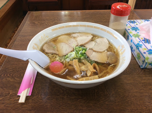 ラーメン好きの後輩に勧められて、初訪問です🚙 訪問したのは、平日の正午前⌚️先客は1名。入口入って左側のテーブル席へ👟正面のメニューをみると、メニューは中華そばとチャーシュー麺、そしてライスのみ👀期待大です🥰 チャーシュー麺の大盛りを注文して、店内を眺めているとさほど待つことなくちゃく丼🍜静かな店内に、丼から立ち上る程よい香りが広がります😌 早速スープをいただいてみると、昔懐かしいシンプルな味わい👍落ち着きます🤣続いて麺をいただいてみると、細めの縮れた麺が程良くスープを連れてきてくれるため、テンポよく食べ進められます😁 また、食べ進めていると口の中に旨味が広がるとともに、香りが鼻に抜けるように広がってきます😆ほかのお店では、なかなか経験できない味と香りを楽しんでいると、スープも残さずあっという間に完食です😋 ご常連と思われるお客さんで混みだした店内を後にして、午後の仕事へ🚗普通なら、美味しかったなで終わるところですが🥳食後口の中をリセットするため水を飲んだにもかかわらず、その後もしばらくスープの旨味が口の中に残り、幸せな気分に�...