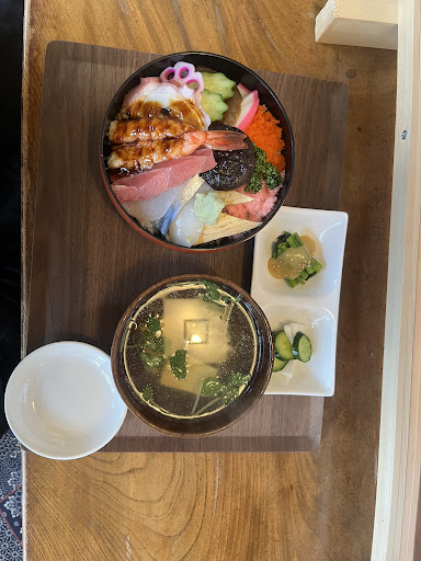 Read moreお昼時にふらりと立ち寄りランチの三陸海鮮丼(850円)をいただきました。 海の幸から山の幸までふんだんに盛り込まれた彩の綺麗な海鮮丼は目でも味わえる一品でした。 ふんわり柔らかなあなごが絶品です! 椎茸も味が絶妙に染みててたまりません♪ 鯛のお吸い物がまた優しい味で鯛の風味がたっぷり出てていいお味でした。 いやー満足満足。 こういう当たりのお店に出会うと1日幸せな気分になれますね♪(´ω`)