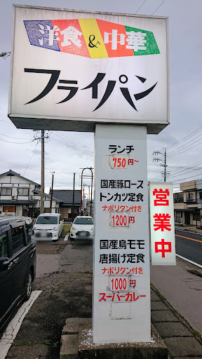 かつて、ケチャップがご馳走という時代があった。トマトで作られた、紅と強い酸味とで彩られただけで、ほかのものよりも一層美味く感じられた。いや、はっきりと美味かった。チャーハンに鶏肉とともに投ずればチキンライスに、スパゲッティに投ずればナポリタンと化す。口の周囲といい、指先といいベタベタとなり、服は紅の点々が飛びつき、母親から叱責の声が飛ぶがそんなものは関係がない。それでよいのだ、それでこそ美味いのだ。東御市にあるこちらは、そんな懐かしきケチャップベタベタのナポリタンを食べさせてくれるお店である。名の通り、フライパンを模した看板は古びてはいるが、その分"風格のある"といった風情を醸し出している。こちらは年配のご夫妻が切り盛りされていたのだが、今日は若い女性がホール係を担当している。アルバイトかな?厨房の奥まで確認出来なかったので詳細は不明だ。
