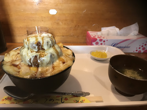 Two ladies in their twilight years serving up good food. Small place with good traditional Okinawa food. Limited seating, but great lunch spot for two people. Very reasonably price with big serving sizes. If you like omelette rice, this place is awesome. The cheese hamburger meal is...