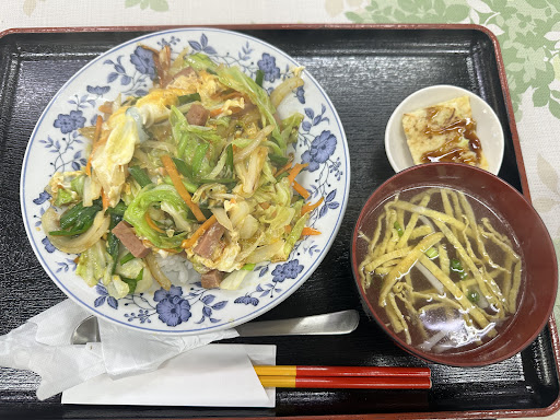 Read moreビーチで泳いで、水着のままランチに行ってきました。 店内はすごい寒かったので、外にあるテーブルで食べました。 オッサンである私と8歳の息子は、海パン一丁で上半身裸のまま。 真夏なので、それほど違和感なく外で食べることができました。 妻も水着でしたが、露出度は高くなかったので問題ありませんでした。 妻が食べた野菜チャンプルー定食は、昔ながらの中華屋さんの野菜炒めのようなシンプルで、コクがあって、香ばしくて最高においしかったです。 沖縄そばは、専門店と同じようにおいしかったです。 息子が食べた生姜焼き定食も、...