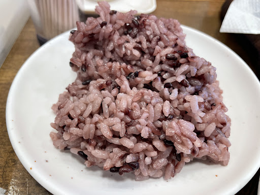 ライスは白米と16穀米があり、スープは卵スープ的なものが1種類。 サラダは千切りキャベツとマカロニのみでちょっと寂しい。
