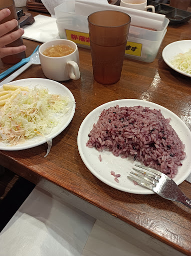券売機で食券を購入して、着席すると 食べ放題のサラダとライスとスープを取りに行くシステム。