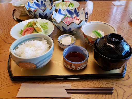 Read more創業当初からお付き合いの、夫婦で営む本格日本料理店です。本日は刺身御膳をチョイス。タコ足の分厚い輪切りや鮎、マグロ等々6品に和風ドレッシングのミニサラダ。生おからとスイートコーンをマヨネーズで合えた?小鉢、⁉️チーズが添えられ珍味です。白菜漬けはやや酸味あり。センスの良い盛り付けは流石だな。プ...