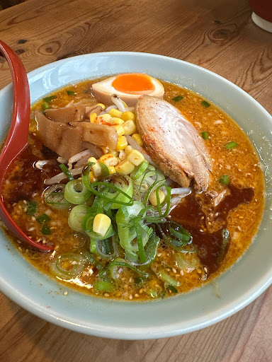 私は辛味噌ラーメン主人が赤べこラーメンそして餃子を注文。10分ほどで出てきました。 私好みの味ではありましたが、辛味噌というほどではなかったのでもう少し辛くてもいいかぁ?と言った感じ。からさを選べるといいと思いました。卵は半熟玉子。チャーシューは厚めで柔らかい。それほどこってりしていないので飽きずに食べられました。美味しかったです❤️ 餃子は外はカリカリ中とろ〜りで、普通に美味しかったです。 また機会があれ...