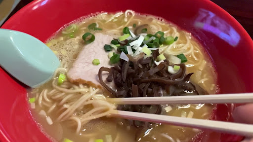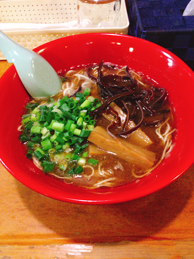 Read more旅行中にラーメンでググって評価が良かったので車で行ってみました。ナビなしでは見つけられないような立地です😅。駐車場は3台ほどのすぺーすがあります。正直あまり期待はしていなかったのですが、かなり美味しいとんこつらーめんでした。同行者はしょうゆとんこつを注文。食べ比べるとしょうゆとんこつの方が濃い感じです。餃子も注文したのですが残念ながら売り切れでした。麺は細麺と太麺があります。細麺は替玉が可能です。太麺は注文時に中盛や大盛をオーダーする仕組みで替玉はできません。訪店は土曜日13:30でしたが、その時は女性のワンオペでした。いつもそうかは不明です。支払い...