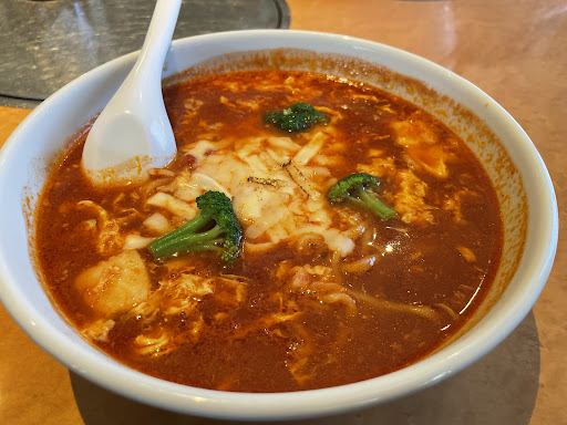 焼肉屋さんですが、トマトラーメンが有名ということで、 冷やしトマトラーメンを頂きました。 トマトピューレ?たっぷりの濃厚なスープに、プチトマト、アサリ、ブロッコリーのトッピング。