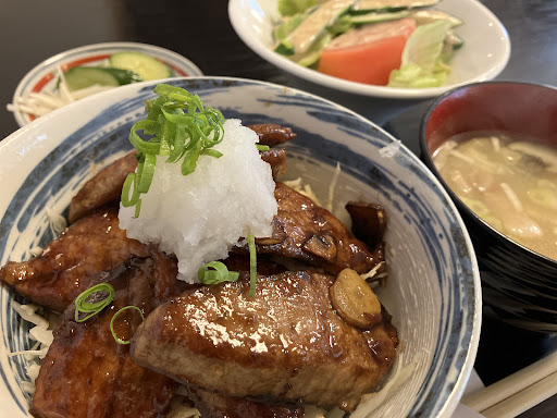 Read moreランチにまぐろのステーキ丼をいただきました。厚めの切り身をニンニクと甘めのお醤油で焼いてあり、油が乗っていてとろける旨さ!ご飯とマグロの間のネギもいい感じでした。お味噌汁も豚汁風で豚バラのコクがありながら上品な味。お漬物も糠漬けにした大根の皮を細く刻むひと手間。丁寧な仕事を感じました。期間限定かもですが、パウダースノーのかき氷が付いてました!ご飯少なでお願いしましたが、お腹ぱんぱん。コスパ最強な大満足なランチでした。お店が通りから少し入るので目立ちにくい様です。ぜひ行って...