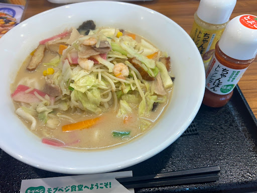 野菜たっぷりちゃんぽん、野菜不足を補うため独り身の時はよく通ったっけ。 その名の通り野菜がたっぷりなので、ドレッシングが付いてくるのも嬉しいポイント。
