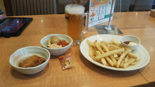 私は昼飲み専用機(笑)なので10:30に来店し、ハッピーアワーのビール税込220円をメインに1000~1500円の予算で飲んでいましたが、この度の値上げでアルコール軒並み値上がりしてしまい、特にグラスワインの価格が約2倍になったため、足が遠のきました。 ワインで昼飲みしたい時は敷地内のイオンのサイゼリアに行くことにしています。 ただ、グラスワインはクーポンが出るようになり、それを使えば110円くらいで飲めるようになりました。