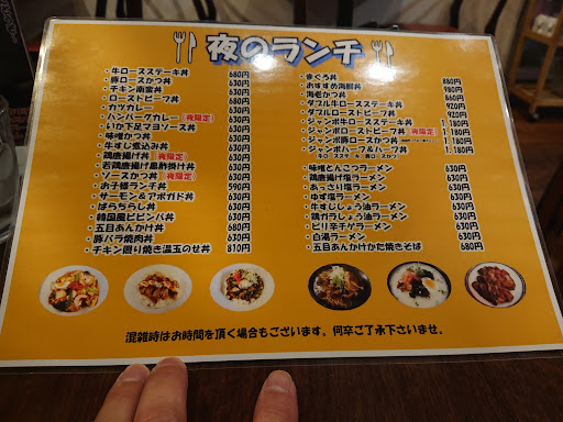 Read more前から気になってました いつかは入ろうと思ってました 店内はこの街でお洒落な店です 友達と食事と飲みを兼ねて利用できます 夜のランチがあり今回は 『牛すじしょう油ラーメン(¥630)』 を選びました ランチは昼食のイメージですが店内は洋風なので夜の軽食(ランチ)と言っても違和感がありません ラーメンが来るまでメニュー表をみてました 丼物、ラーメンのランチ以外に居酒屋メニューに飲み放題がありました 店内はアメリカン、食事は丼物、ラーメン、居酒屋メニュー、BGMは西アジア風でなかなかのものでした! さて、5分程で牛すじしょう油ラーメンの登場です! 匂いはすき焼き風 スープはすき焼きの味がミックスされたしょう油味 麺は普通の麺 牛すじはサイコロ位の大きさですが、すじを感じられない歯触りで全体的に美味しくいただきました 嬉しいことに麺と牛すじを同じ割合で食べても牛すじの量が多く、牛すじを堪能することができました 食べなから気になってたプチデザートの『なめらかプリン(¥70)』を最後に食べて、大...