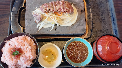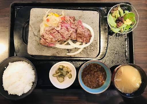 Read more誕生日にランチ目当てで来店しました。土曜の13時頃でしたが並ばずにすぐに入れました。席はテーブルと靴を脱ぐタイプの堀座敷タイプが選べます。堀座敷タイプが楽チンでくつろげました。ステーキランチのサーロインと何かのコンビ330gを注文。ライス大盛りは無料だけど、並をチョイス。ソースはオニオンソースと西洋わさびソースとガーリックと大根おろしソースから2種を選びます。おすすめのオニオンとガーリックを選びました。商品も届き、岩盤焼きにたまねぎのスライスにお肉がミディアムで食欲をそそる。330gでもペロッと食べられました。サーロインは焼きすぎると固くなるそうで急いで食べました。ソースはオニオンソースだとパンチが少し弱い。ガーリックソースも匂いが独特でしたが、テーブルに置いてあるガーリックオイルを足すととてもコクが増して美味しかったです(・∀・)誕生日前後3日に来店すると誕生日プレゼントでデザートかサラダかスパークリングワインをいただけます。とても素敵な誕生日を過ごすことができました!!店員さんも笑顔が素敵で癒やされますね。そうそう、イオンカードを提示することでお会...
