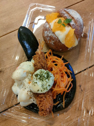 Read more恒例の「☀️朝はパン🥐」の日です😁 今日は少し遠出して、MonaMonaさんへ伺いました☺️ いろんな店舗が隣接しているから、駐車場が広くて助かります。 外観はなかなかオシャレ😎テラス席も素敵です💓店内は木目調で統一し、棚の中には美味しそうな焼きたてパンがお出迎え🥰 毎度のことで、迷いながら店内をぐ〜るぐる😂妻と二人で惣菜パン3個にあんぱん1個を購入。 500円以上買えば、コーヒーやスープがサービスで付きます😘二人ともスープ(本日はコンソメ)をチョイス! イートインすると伝えたら、トレーは付かないと😳トレーが無いとパンくずが下にボロボロこぼれるんですけど😓 気を取り直して、パンをいただくことにします。米粉を使ったパンが売りのようです🥰米粉パンは滅多に食べないので期待が高まります。二人で3個の惣菜パンをシェアします🤭 米粉なので小麦粉よりは風味が軽い感じでしょうか?でも具材と相まってしっかりお腹にたまります。米粉パンもアリなのかな🤔 P.S.すぐ近くにスーパー、100均、産直などもあるので、こちらで朝食を済ませた後、いろいろ買い物...