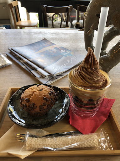 Read more店内は焼き菓子やコーヒー等が主に販売されていました。横長な店内の為、初めて行った私からは少し分かりづらく戸惑いました。他の口コミにショーケースにケーキらしきものが並んでいたので、ケーキを目的にお邪魔させて頂きましたが、お邪魔させて頂いた季節は果物のゼリーやコーヒーゼリー、プリン等が並んでおり、ケーキらしき食べ物は包装紙に入ったロールケーキかなという感じでした。出来立てのデザートがあると思い込んでお邪魔させて頂いた為に、包装紙に包まれた商品が目立ち少し残念でしたが、私が勘違いしただけなので自業自得だなという感じでしたσ^_^;(笑)結局、カップケーキを頼みした。飲み物は珈琲に力を入れておられるのか、美味しそうなメニューが並んでいました。暑い時期だったのでデザートの様な冷たいこちらの飲み物を頼みました。味はカップケーキも飲み物も美味し...