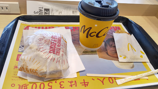 Read more朝マックに行かせていただきました。 安定の全国同じ味なので助かります。 また行かせていただきます。 と思ってたのですが5月28日の朝マック、入店してレジ前に居るのにドライブスルー対応で人手不足(厨房1人接客1人の計2人?)で対応者が居なく数分待ちました。 その後、手が空いたのか客席まで聞こえるほどの声量で店員同士で世間話。(外国の人?)