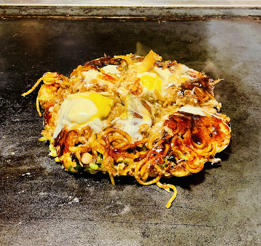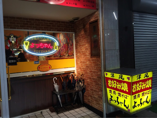 Read more砺波市表町地内の商店街にある老舗のお好み焼き屋さん。 日曜日の午後1時過ぎに訪問するも店内は満席、少し待ってなんとかテーブル席にありつく。 久々の訪問、なかなか来れないのでとりあえず「よっちゃんスペシャル」、連れは「ピザ玉」を注文。 お好み焼きは個性的なご主人がカウンターで焼いてくれた後、コテにのせて各テーブルの鉄板まで運んでくれる。 配膳と同時に店員さんがコテでカットしてくれましたので、カット後の写真をアップしました。 「よっちゃんスペシャル」は具に牛肉、海老、ホタテが入っており豪華な感じ。 こちらはソース、マヨネーズにカラシが加わり絶品ソースになるんです。 「ピザ玉」はその名の通り、とろけるチーズにサラミが入っており、ピザ風味のお好み焼きに仕上がっている。 価格は良心的で比較的配膳も早く、どれも美味しい。 他にも焼きそば、鉄板焼きなどがあり友達、カップル、家族連れでも満足出来る良店です。 駐車場はお店から少...