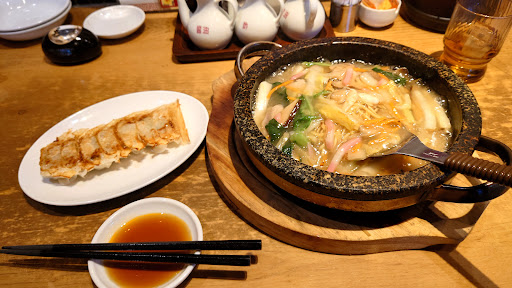 Read more外環沿いにあるが、向かいのかつ喜や源氏本店と同じ系列なので、駐車場は共用できるそうだ。外環の西側に店舗があるが、駐車場は外環への東向きだけでなく、交差道路に向けて南向きにも出入り口があるので、外環でUターンすることなく、出入りが可能だ。つまり北から来たなら旭ヶ丘交差点で右折して南側入り口から入ればいいし、南に帰るときは南向き出口から出て、旭ヶ丘交差点で外環南向きに右折して帰ることができる。日曜日の20時ころに行ったら先に5組くらい待っていたが、回転は早く5分程で順番が来た。水晶焼餃子、名物四川風陳麻婆豆腐、青椒肉絲、エビチリ、とうもろこしスープ、白飯、石焼餡かけ焼きそばを三人で食べた。スープは量がたっぷりあって、熱々で旨くコスパが良い。焼きそばも名物というだけあって旨かった、麻婆豆腐も熱々で挽肉も多いのはよいが、辛さが全くなく、物足りない。餃子は名物というが、普通だった。全体に味付けが上品であっさりとしていて食べやすい。3人で満腹して6500円ほどだったので、リーズナブルだと思った。 このディナーの後、ランチにも行ってみた。寒い日だったので、担々麺セット1180円と水晶焼餃子を食べた。担々麺にミニ炒飯がついている。担々麺は辛くはないが、胡...