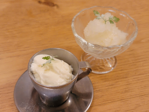 ■ ドリンク ・ブラッドオレンジジュース ・ミントとルビーグレープのソーダ(+100円) 生のミントとグレープフルーツがたっぷりのソーダ、とてもきれいな彩りでさっぱりといただけます。
