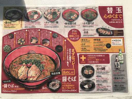 I love this ramen! I first tried it in Kurashiki years ago, and I knew I had to try at the original shop, finally I could! So, the soup: Shodoshima is famous for its soy sauce, so of course that is included (Yama-Roku soy sauce). The stock is made from a variety of local fish, such as dried iwashi, and locally produced veggies. Although being fish based, it’s pretty thick & creamy, but not too heavy. The noodles are good, the pork is delicious! What I really think makes this ramen great though, is the locally produced dried nori seaweed. It really adds something special to the ramen. I recommend getting extra! I ordered an extra serve of noodles (free!!!), and as you can see from the photograph, it comes topped with pork, green onions & seaweed... It’s a meal in its self! Sorry, I’ve written too much! I guess you can tell, I really like this ramen! (Next time I’ll try the spicy one!) (Oh, and another thing that blew me away is that it’s right by the sea, AND, we can sit outside & enjoy our ramen....