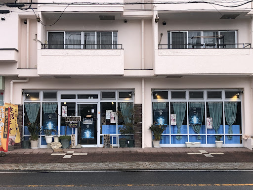 駐車スペースは店前に数台可能だけど、かなり狭めなので、目の前の市役所の広大な駐車場も使えるかと。 外見はちょっとガチャガチャしててチープなガラス戸で少し入りづらいけど、中に入ると若干薄暗いけど緑が多く、落ち着いた雰囲気。