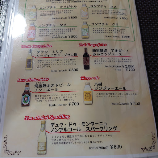 Read more東金郵便局はす向かい、大原じびいんこう科の裏側に所在する古民家のフレンチレストラン。結婚記念日にディナーBコース3800円を妻と二人で利用。お店は、男性シェフ1人で営業しています。 他に2組のお客さんがいましたが、一人ずつ料理の説明してから提供していました。 ドリンクは、最初にノンアルコールの勝沼醸産アルガーノの赤ブドウジュースとアラン ミリア ソーヴイニヨン...