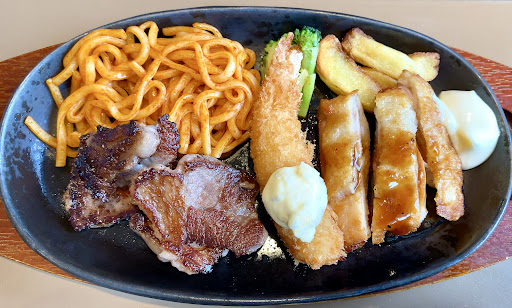 入り口に有る券売機で食券を購入し席に着くと店員さんが取りに来ます。待ち時間は7〜8分⏳ 運ばれて来た膳の見た目はイイ感じ✨ 連れが食べた"しまほっけ定食¥890税込"は美味しかったらしいです。 自分が食べた"カットステーキミックス定食¥990税込"は… まぁ肉は値段相応でしたが味は美味しかった🤣 付け合わせのナポリタンパスタ… あれはちょっと美味しくなかったかなぁ…