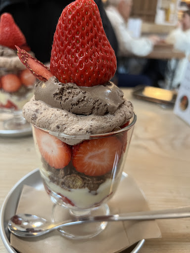 Read moreいやー、、、美味しかったです。 かき氷を食べましたが、とにかく絶品です。その他のいちごを使った商品もたくさんあります。どれもとても美味しそうです。店内のインテリアも外の様子もこんな田舎に(失礼!)オシャレで居心地が良かったです。店員さんも接遇がきちんとしていました。 お店までの道はこんな所に?と不安になるような田舎道ですが、Googleナビでバッチリ来れます。しかし訪問時、お店の前は車がいっぱいで、どこに停めたら良いのか分かりませんでした。悩んで、ビニールハウスの前に居た人に聞くと「こちらに停めて構いませんよ」との事。 予約をしていなかったのですが、空いているテラス席に案内してもらい快適でした。しかし予約客が来た場合は、食べ終わると速やかに移動して欲しいと言われました。 店内やテラスの方でゆっくりしたい場合は予約が確実だと思います。 テイクアウト商品もあり、家族に購入。とて...