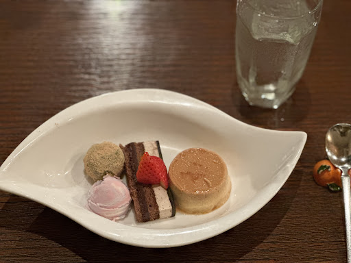 Read moreお気に入りのパン屋さんに行く途中辺りでランチをと…🚙 何かでこのお店の投稿を見て落ち着いてランチ出来そうなお店みたいと来店してみました✨ 11号線の東温市道路沿いDOCOMOショップから入ってすぐにあります…グランフジ重信のちょうど裏側ですね… こんな所にフレンチレストランのお店がと驚きましたが本当に入ると静かなお店でした✨ 来店して暫くするとお一人で来店された老婦人やサラリーマン風な方もいましたね…でもお店もゆったりしてるし落ち着いた時間が過ごせました😊 ランチメニューの種類は何通りかありますが入口にメニューも書いてありワカリヤスイですね💕 何にしようかと迷いましたがお肉とお魚のついてる物を選びました…🍴 お値段は¥2000でした… GO-Toイート券も持っていたら使えますよ😉 お味はマズマズかな…スープとお魚料理が私的には良かったかな…😊 デザートも3種類…ですが取り皿的なお皿だったのが残念ですね😒 デザートのプレートを換えるとぐんと見え方も違うのにと…思ったり😓 しかし…しかし…郊外ならではの落ち着いた...