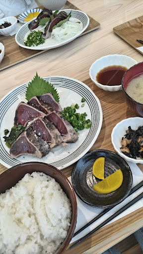 Read more私は隣の県から来たんですが、カツオ定食のカツオの鮮度がスーパー並みなのに、1400円と近くのお店よりもお高めで、量が少ない。9月の上旬なのにエアコンも止まってて暑かったし、ハエがそれなりに飛んでた。セルフなので仕方ないのかもしれないが、桟敷席に前のお客の食べこぼしもあり、机の上も。少しは店内見回した方が良いと思う。外観は綺麗なんだけどな‥。高知ならもっと新鮮なカツオが食べれるので、も...