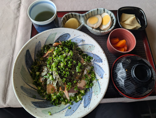 高知県ではどこでも見そうな鰹のタタキが乗っかった丼かなーと思ったら 生でもタタキでもなく、たっぷりの葱と鰹節がかかったご飯でした。 醤油がかかってるのか、どこか懐かしい味がしたような気がする。 男性には量が少ないかもしれませんが、ささっと食べられる量でしたね。 カレーは特筆することなく見たまんまの味がします。 レトルトであるような例のアレです。