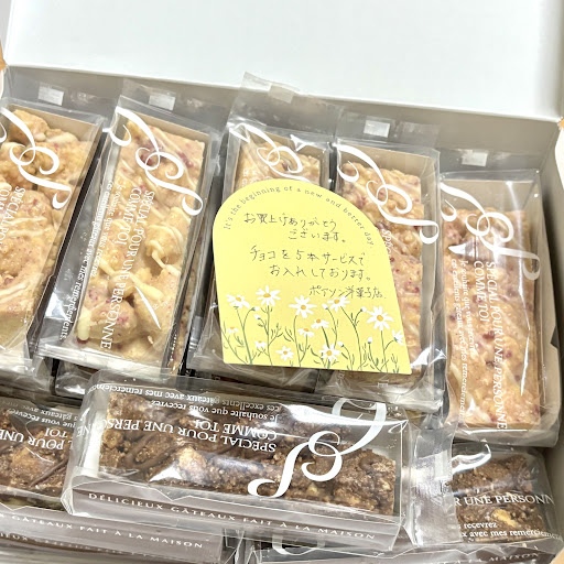 Read moreチョコレートバーの大ファンです✨ バレンタインとホワイトデーの期間限定商品の様です。(違ってたらすみません💦) 以前友人が送ってくれて以来、新しい食感と美味しさに虜になってしまい、どうしてもまた食べたくてお店へ直接お電話し取り寄せをお願いしました。 快く受けてくださりすぐに発送していただけました。 たくさんおまけが入っていてびっくりしました。(おまけの域を超えてました。) また来年もお願いしたいと思っています。 終始親切丁寧にご対応いただき本当にありがとうございました🙇♀️