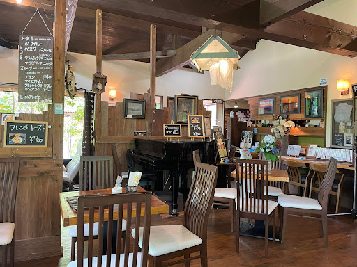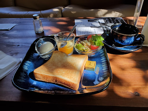 Read moreとても気分がよくなるカフェです。営業開始直後に行った為、他にお客さんはいなかったので色々な席を物色しながら、結局玄関近くの窓際、庭と小路が見えるソファの席にしました。奥というか外にもイスとテーブルがあるのですが、一部には灰皿が置いてあるところもあり、スモーカーにもやさしいお店のようです。 嫌煙家の方であれば煙が気になるわ〜と思うかもしれませんが、予想よりもかなり広いので気になることはないと思います。 朝イチなのでデザートを食べる気分でもガッツリごはんを食べたい気分でもないので、飲み物だけオーダーしようかと思いましたが、モーニングセットがあると言うのでお願いしました。コーヒー・トースト・マーガリン?・サラダ・ゆでたまご・フルーツゼリーで600円(税込)でした。久しぶりにゆっくり集中して本が読みたいなと思って来店しましたが、最高です。どこのカフェに行っても当たり前のように聞こえてくる賑やかな話し声が一切しないのです。ジャズが流れる中、ふと窓をノックする音が聞こえて顔を上げると甲虫が窓にぶつかっている音であり、ふと人影が見えたと思ったら黒と青の大きな蝶だったり、目の端に何かよぎったと思ったらニホントカゲの幼体だったりします。最高です。パンケーキがあったので、今度は娘を連れて来ようと思います。 それと、もう1軒のレストランの方も覗いて見ましたが、ゆったりとしたスペースで配置してある重厚なテーブルとイスと全面窓ガラスのステキなお店でした。素敵な休日が過ごせそうなのでここには...