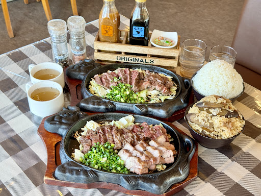 注文後はおかわり自由のセルフコーナーへ お冷にはレモンとローズマリーが入っていてサッパリ爽やか★ 鳥ごぼうのご飯は味がしっかりついてて美味しい⁽⁽ଘ( ˊᵕˋ )ଓ⁾⁾ 思わず食べすぎるほど‥お肉が来る前におかわり必須★ スープもしっかり美味しい⁽⁽ଘ( ˊᵕˋ )ଓ⁾⁾ お肉の下にはキャベツが敷いてあり好きなソースやコショウなどで味付け★ ビックリするほど柔らかくてジューシー 家では無理なレベルの焼き加減⁽⁽ଘ( ˊᵕˋ )ଓ⁾⁾ 熱々鉄板で最後まで美味しかったですよ⸜( ⌓̈ )⸝