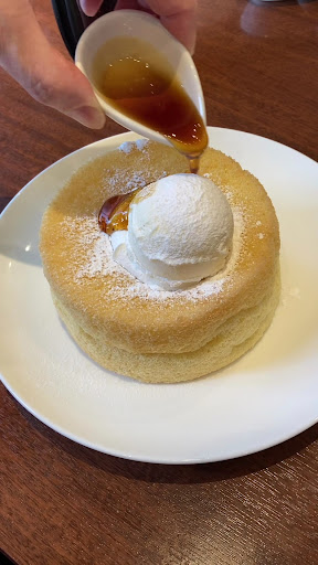 4️⃣ 日曜日の14時ごろ行きましたが、すでに4〜5組くらいいらっしゃいました。 待ち時間は30分位だったと思います。 今回はスイーツをいただきました。 パンケーキ&パフェ&ドリンクのセットにしました。 ①ふわふわパンケーキ 1,133円 6カシスマンゴー(パフェ) ICE紅茶 ②Berry Berryシフォンパンケーキ 1,463円 3ショコラマロン(パフェ) HOTコーヒー 合計 2,596円でした。