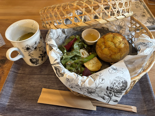 Read more谷瀬の吊り橋付近にあるとてもおしゃれなカフェです。 マルゲリータは人気で早めにに売り切れるようなので、あったらラッキーですね。 お店の方もとても親切です。 平日限定カレーパンのランチセットを注文しました。 テイクアウトも出来たので、スイーツとキノコのピザをテイクアウトして帰りました。 オーダーは席でスマホでします。 全て美味しそうでどれにしようか悩みます。 少し柄の悪そうな親子がピザが遅いと怒ってはったのですが、ピザは窯で焼いてそうなので仕方ないと思いました。 それでも紳士的に対応されていたので、飲食店の方は大変だなぁと。