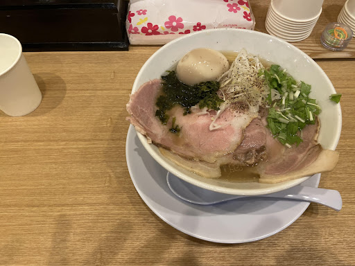Read more店舗は複数の飲食店等が入る建物の一角 道路を挟んで山陰海岸国立公園 鳥取砂丘である 屋号は八起(やおき) 暖簾をくぐり入口付近で食券購入システム 1,000円札のご準備お忘れなく オーダーは味玉牛骨拉麺(1,100円) お冷やは紙コップスタイル 具材は大振りで薄くカットされたレアチャーシュー1枚 ネギ◦水菜◦海苔(あおさ?)◦トッピングの味玉 チャーシューは折り畳み食すとミルフィーユ効果(造語)でしっとり食感が歯を下ろすたび繰り返される これは旨い 味玉は黄身の具合が丁度よい塩梅、しかも白身もプルプル食感、味付けも申し分なし これも旨い ねぎ、水菜はシャキシャキ感を演出 海苔(あおさ?)は洗練された牛骨スープに程よく塩味と磯風味を届ける 個人的にはこの海苔を早めに胃に収めると後に残る塩味が軽減されるのではないか説 麺は硬め細ストレート 小麦の程よい香りが感じられスープとマッチ 「麺屋...