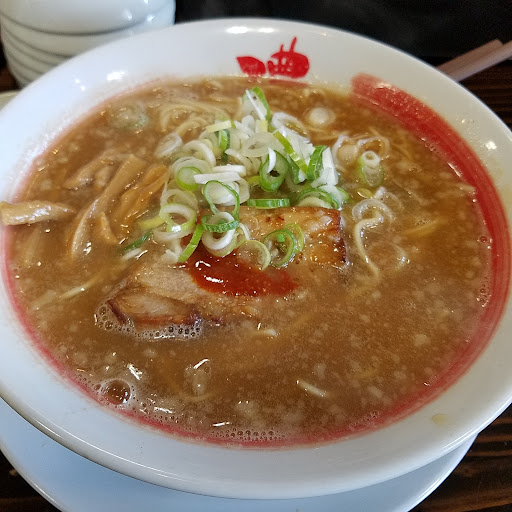 Read more二度と行かない!というほど不味くなく、絶対毎回行きたい!ってほどでもない感じ。ただ、こってりとした豚骨味の細麺ラーメンを食べたいときには、いいかなーってとこ。 【ばり濃】を注文。日曜日のお昼ということ、店内賑わっていたので、出てきたのは、そんなに早くはない。一人で行ったから余計に待ち時間が長く感じたかな? スープは、ドロッととろみがあり、濃さをましたオーダーなので、こってり感は、○。細麺ストレートで、私は、◎。チャーシューは箸で切れるくらい柔らかい。味玉は、別途。 ずっと食べていると、ちょっと、しつこくなってくる。味を変えたいが、テーブルには、すりおろしにんにくと一味ぐらいしかない、もしくは、無料のばり辛を混ぜるといいかも。 紅しょうが、ごま、辺りもおいてほしい。 次回行くと無料で味玉がもらえる拳がもらえる。更に、レシートは、同じ敷地内の靴屋で10パー引き券...