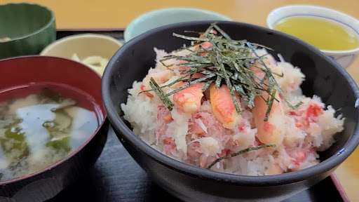 2024年1月 所用が早く終わったので、食べていなかった朝ご飯どうしようか?と考えながら営業時間確認したら10時オープンだったのでこちらへ。 朝ご飯にカニ丼とか豪華すぎるやん。 ということですがせっかくカニの時期に鳥取に来たので、本ズワイガニ盛々丼2480円を注文。 8月からこのメニュー始まっているようでカニなくなり次第終わりっていうことは冷凍なんかなぁ? まあ、でも、カニは本当に盛々でした。 まずはそのまま蟹の旨味を堪能する。 これはこれで美味しいです!流石カニ。でもしっとりジューシーでした。カスカス、モサモサではなかったですよ。 付いていたカニ酢浸けてみる。おぉ?こっちのほうが美味しいやん。というわけで丼全体にカニ酢を回しかけする。海苔とカニとご飯だけの贅沢丼おいしかった~。 JAF会員の方は注文時に会員証見せるとソフトドリンクサービスあるので忘れずにね〜。