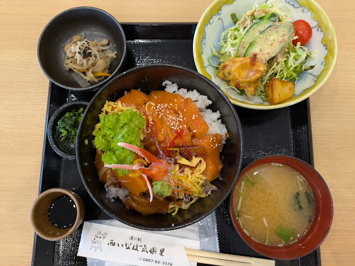 Read more「レストラン鷲峰山」は道の駅に入って右側です。 スタッフの方がほぼ全員新人としてデビューされています。 男性が優しくてきぱきと全体を見て店員に指示を出し、お客をテーブルへ案内しています。(ご苦労様) 客の皆さんもゆったりと案内されるまでソファーに腰を下ろして待っています。レストランは4人がけのテーブルが10卓前後ゆったりと配置され、3人の女性店員が注文を受け料理を運び後かたずけとテーブルを拭いて、次のお客の対応に当たっています。 メニューは鹿野町で採れた野菜や酒津の塩鯖を使った定食、鹿の(鹿野にかけている?)のつみれラーメン(うどんもあり)、気楽里(きらり)定食等々地元気高町を全面に押し出しています。皆さん...