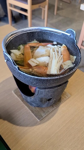 2023年12月 カニのシーズン到来。AM11:00オープンしてすぐに食券を買い入る。 カニカニ丼DX(今だけ蟹脚一本追加)¥2200を頼んでみた。一緒に行った家族はカニが駄目(アレルギー)のため、あさり飯定食¥1000。他にプリン¥500を購入。 カニカニ丼DXは、ミニカニ鍋とカニ味噌豆腐がついていた。 最初にミニカニ鍋が運ばれてくる。テーブルで固形燃料に火がつけられる。カニが生なのでカニの色が変わったらひっくり返して両面色が変わったら食べてくださいとのこと。 暫くしてカニ丼が到着。カニ脚3本とほぐし身、カニ味噌(甲羅に入っている)。食べ方は好きずきだと思うが、まずカニ味噌を醤油に溶いて丼全体に回し掛けする。 カニ脚3本ボイルだと思っていたが生ガニでした。美味しいな。カニ味噌豆腐ば微妙な味。 ミニカニ鍋も、親ガニの味噌汁のほうが味濃厚で美味しいんだけどなぁ。 でもカニ丼は最高に美味しかったです。 あさり飯定食は安定の旨さだったとのこと。 プリンはクリスマス仕様でした。 ここのプリン相変わらずエエとこのコな味がします。しっかりプリンです。