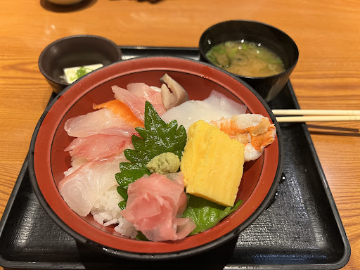 頼んだのは海鮮丼、天ぷらの盛り合わせ、お茶漬け、そしてかぼすの日本酒。 お腹を空かせて行ったけどぜんぜん出てこなくて待たされました、店内ガラガラだったのにな...。