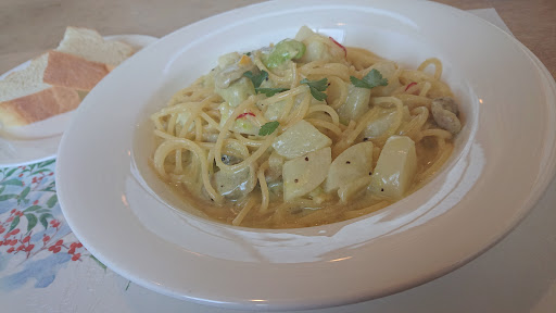 Read more土曜日と月曜日のみのオープンだそうです。 2名で土曜日に伺いました。 民家で趣味で営んでおられるのでしょうか。 ネット調べで11:30からがオープンでちょうどに入店したのですが、既に食事中のお客が中にいたのでもっと早くにお店は開いていたようです。 20分くらい寒い待合室で待ってから店内への案内が来られました。 ミートソースとカルボナーラでしたが提供までに時間がかかり12:10頂きました。 アルデンテ仕上げでミートソースは甘さ控え目、カルボナーラは味が控え目。 パンがついていたので綺麗にお皿をぬぐって10分で食べました...