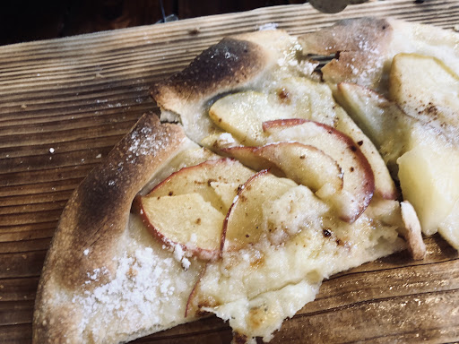 The one-hour buffet costs about the price of one pizza and a drink, so more logical to try the buffet. The pizzas are Japanese styled, using creamy mild cheese with Italian style crust (irregular hand made round and thin shape) and wood fired outside the entrance. The flavours are mild Japanese, and safe. The natto pizza, and the apple pie pizza are unusual and good, as was the Marguerita with fresh basil. There's a salad bar using the usual "safe" salad vegs, with some Japanese influence and cooked veg dishes. On the side was also white rice, sweet curry, and strong mushroom consomme the...